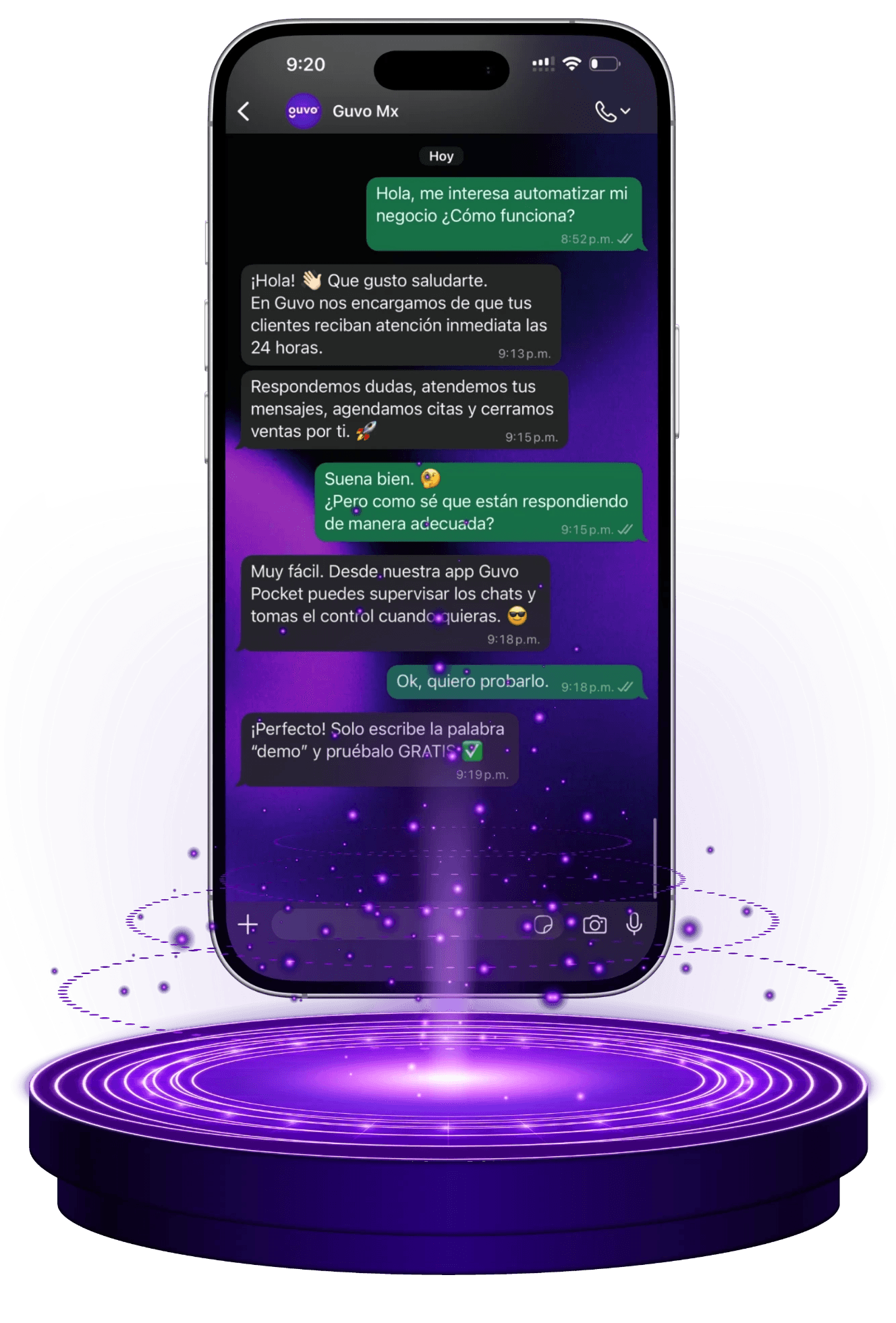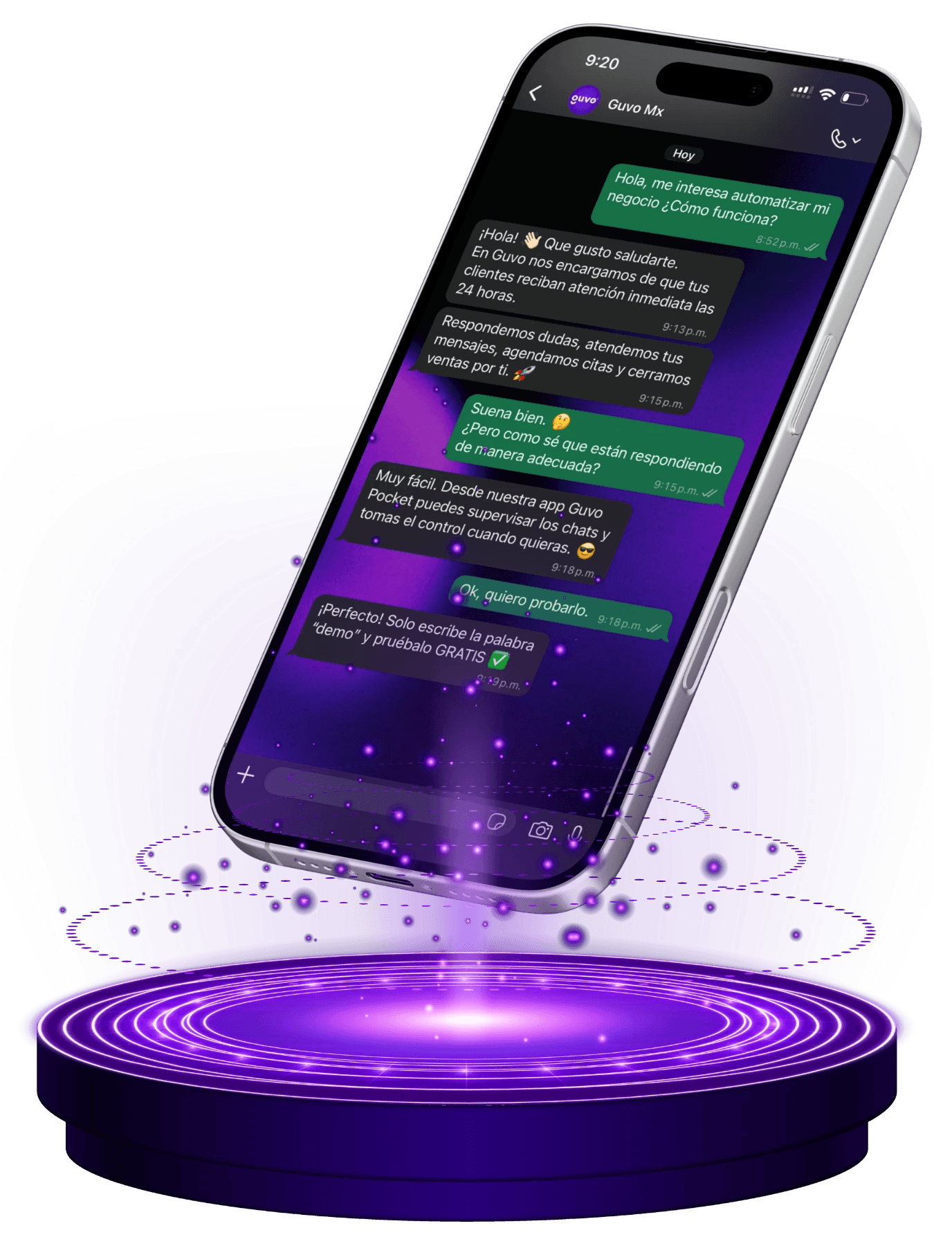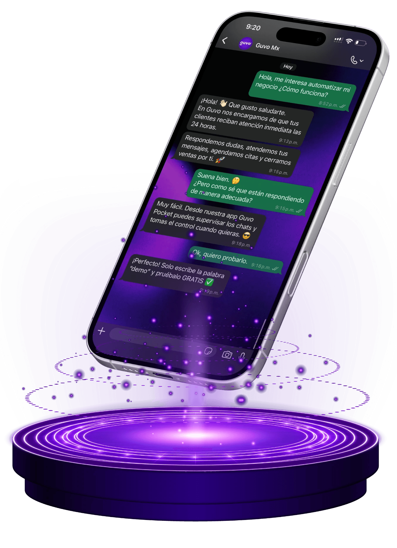 Puedes usar tu número actual sin problema. Nosotros conectamos la inteligencia de Guvo a tu WhatsApp de siempre para que conserves a tus contactos y tu historial. No pierdes nada, solo le das superpoderes a tu chat